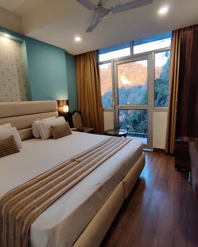 ”Beautiful experience. Hotel cab is available for up drive from road from 9 am to 6 pm. The location, view, room service, and food served is very nice. Rooms are bigger than the mall road hotels. The balcony view is very nice. Large windows."